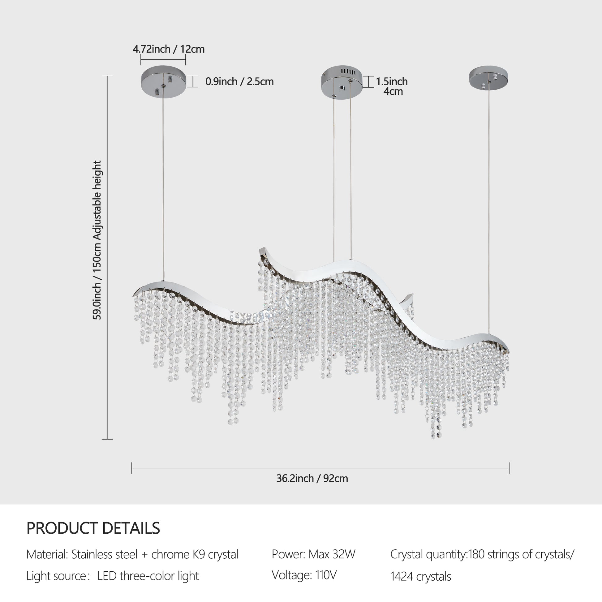 Modern Dangling Wave Crystal Chandelier -36.2-inch Chrome Pendant