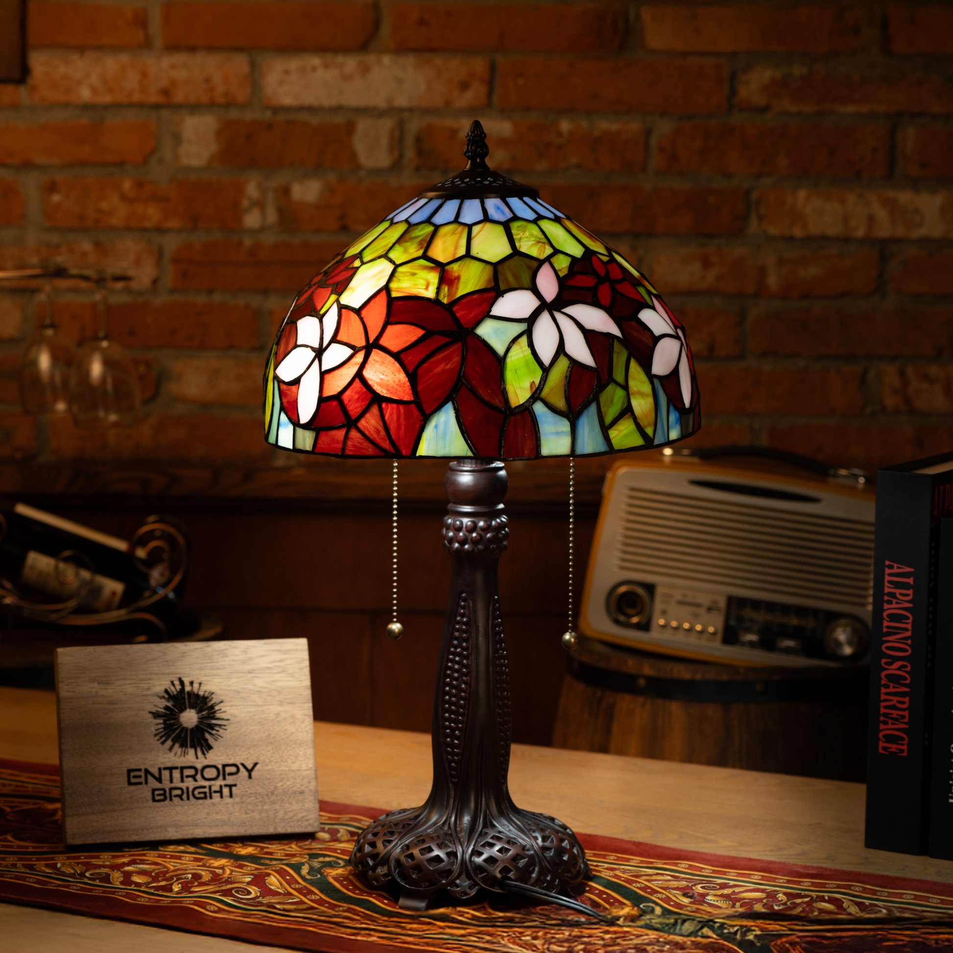 With its exquisite craftsmanship and seasonal charm, this lamp makes a unique and elegant gift for Tiffany lamp collectors and home décor enthusiasts.
