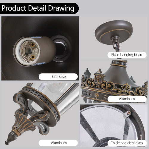 Antique Crown Outdoor Hanging Lantern -Vintage Waterproof Pendant Light