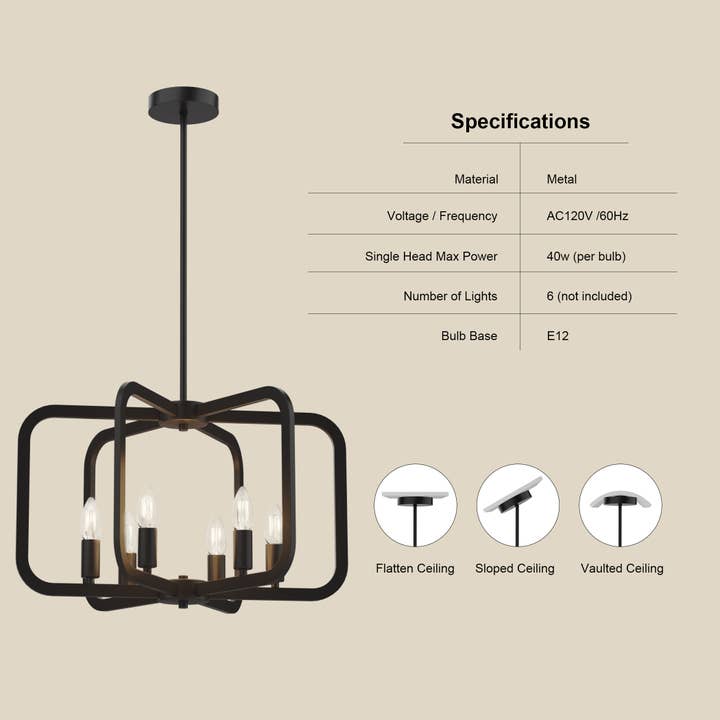 Illuminate your space with the bold yet timeless appeal of this Black 6-Light Pendant Chandelier.