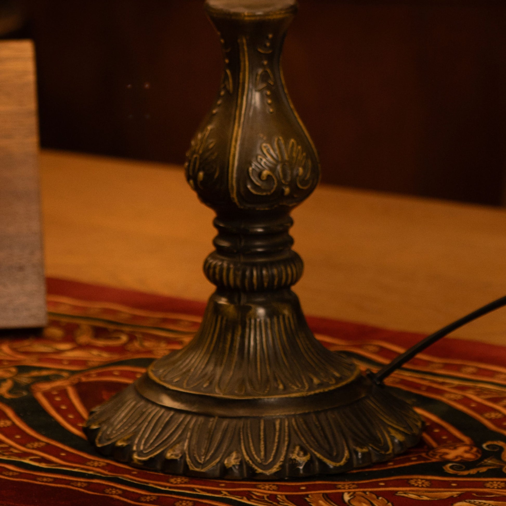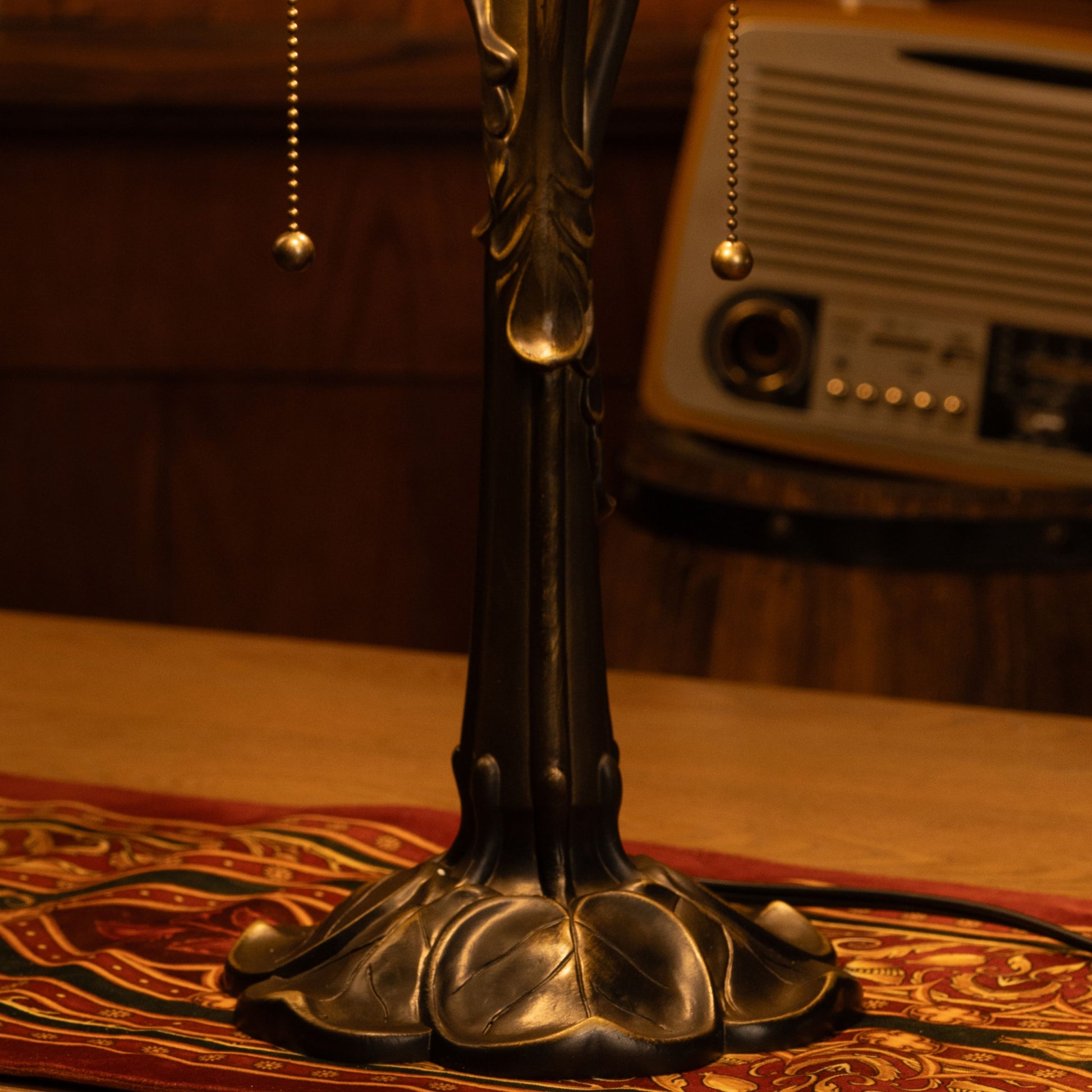 - Material: Stained Glass Shade, Durable Metal Base with Antique Bronze Finish