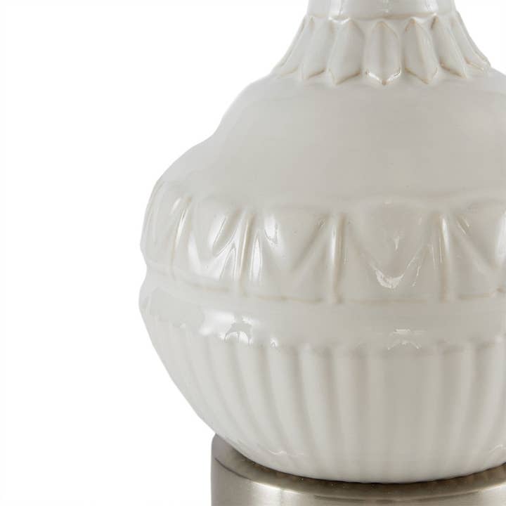 Featuring a painted white ceramic base with a smooth gradient finish, this lamp adds modern elegance to any space.