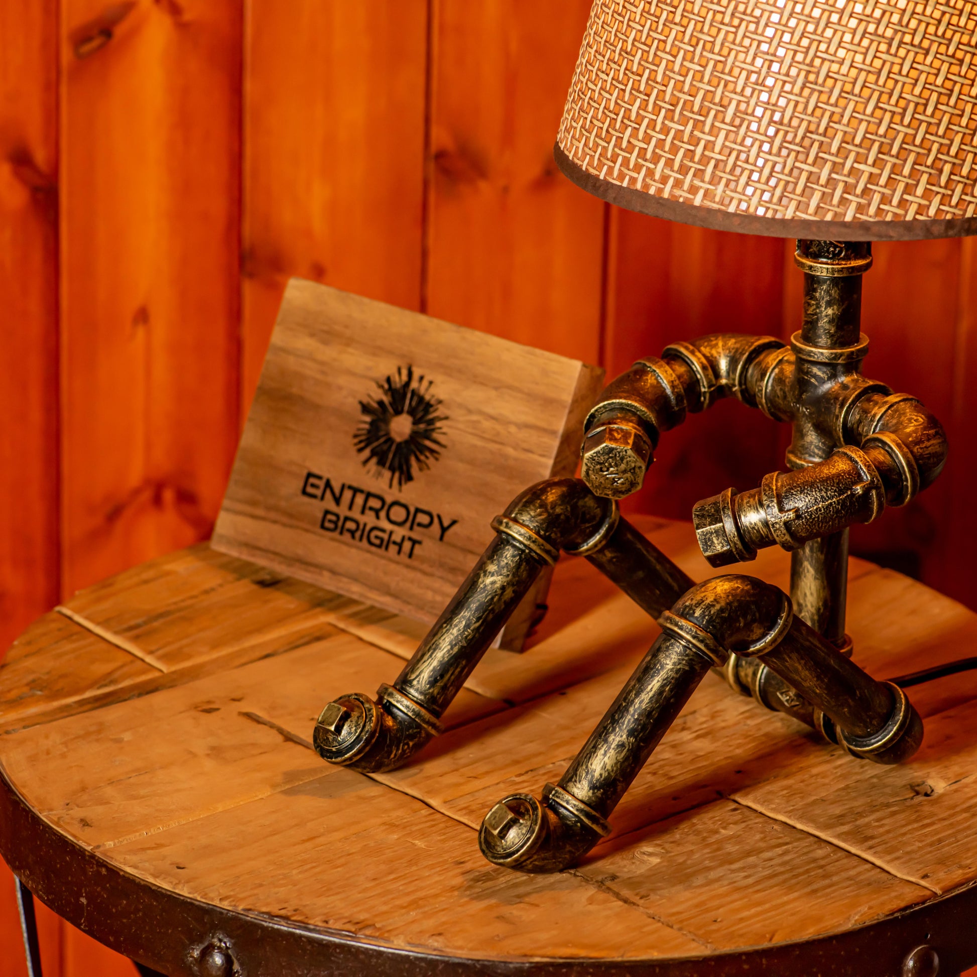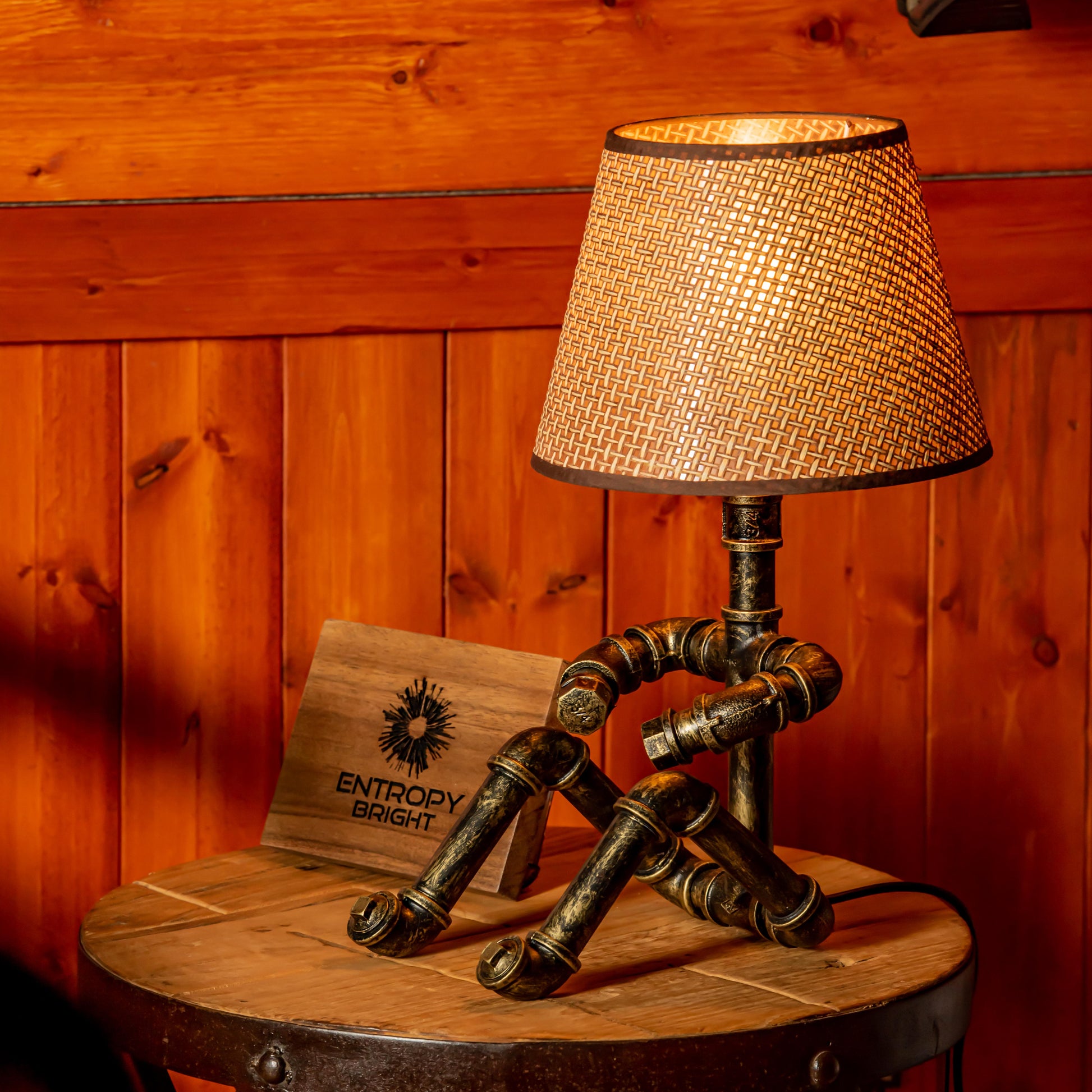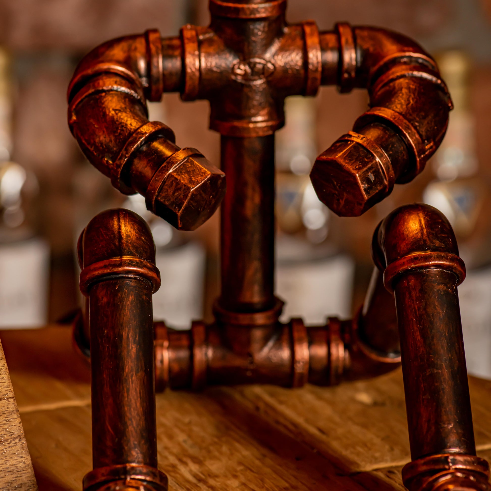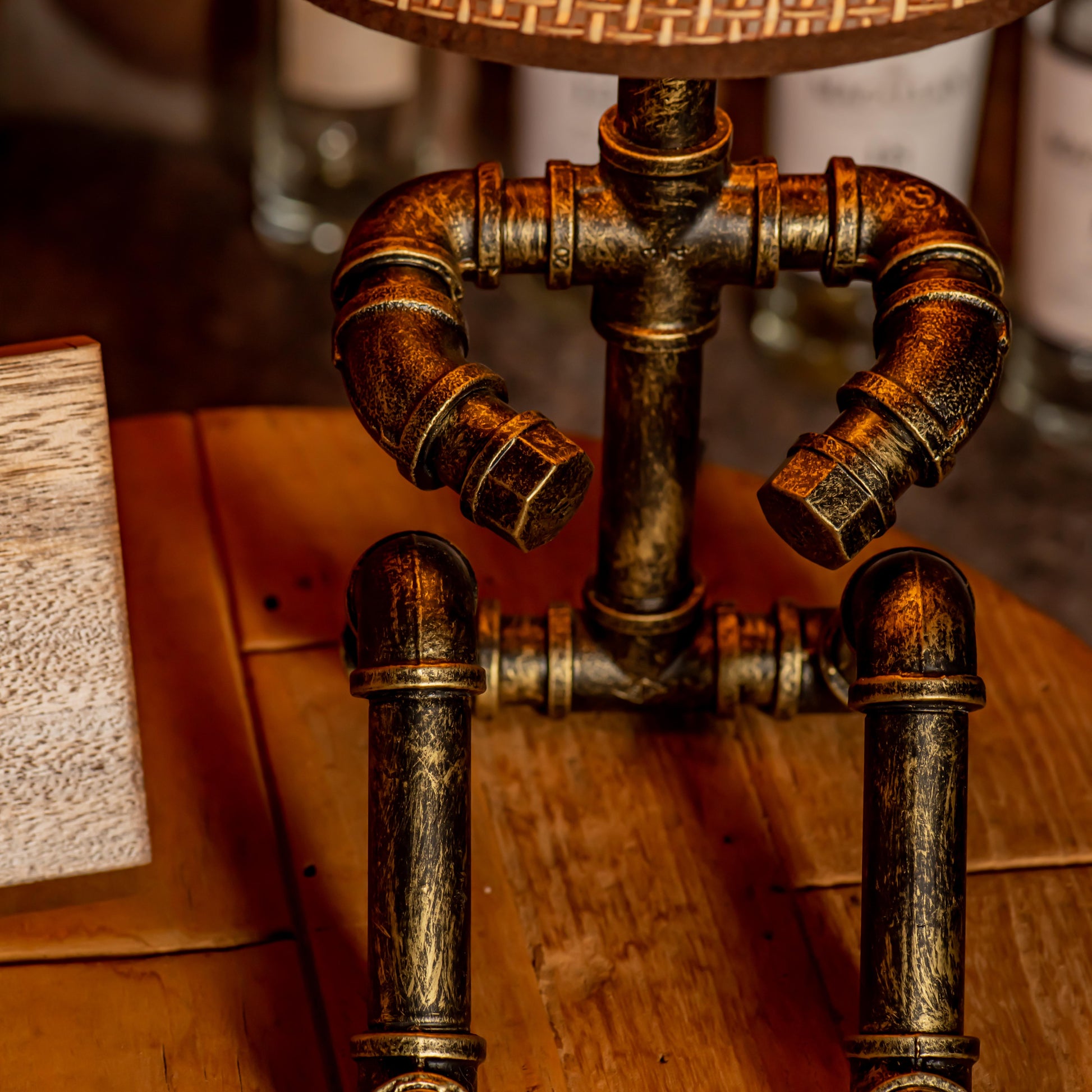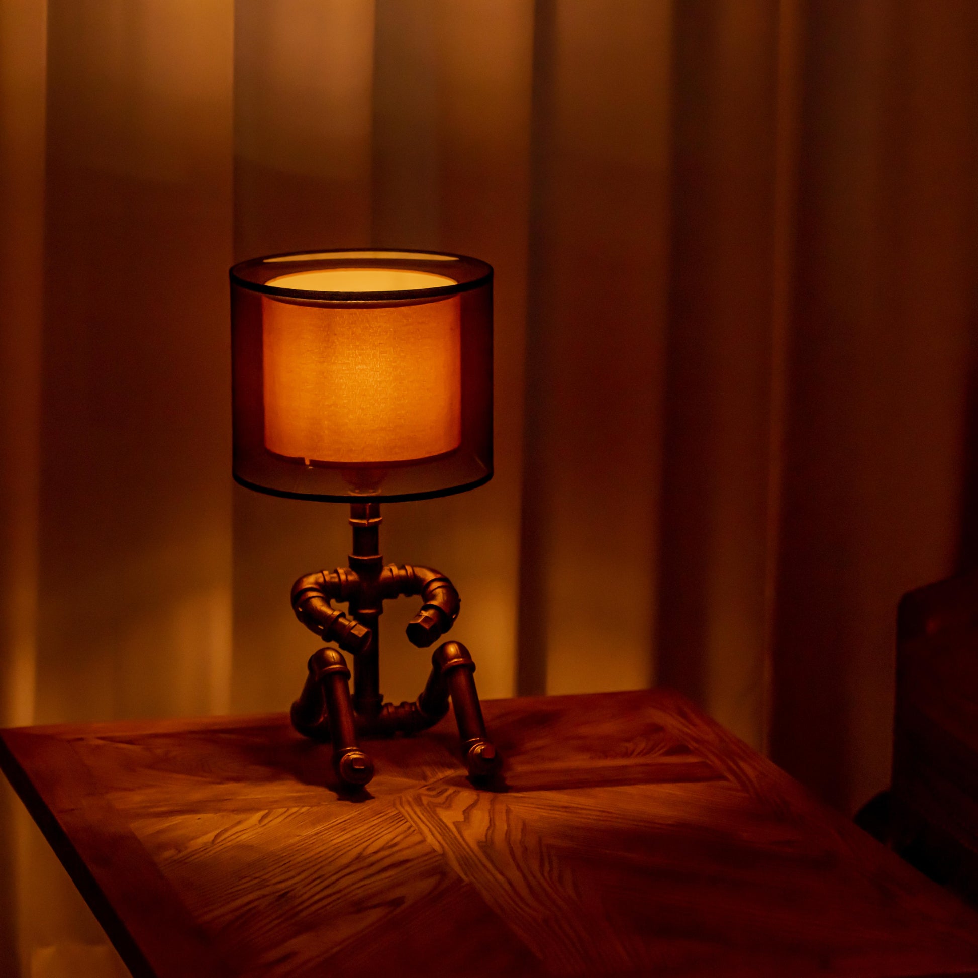 Crafted from durable 1/2" malleable cast iron pipes, this robot-inspired lamp features a raw, industrial look with a steampunk flair. The antique water pipe structure adds vintage charm, making it a standout décor piece.