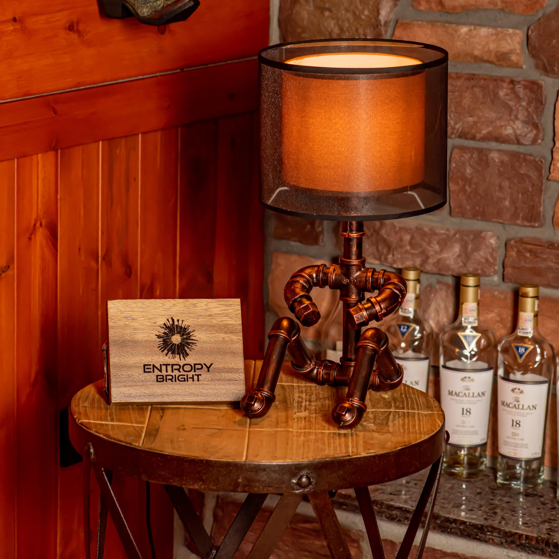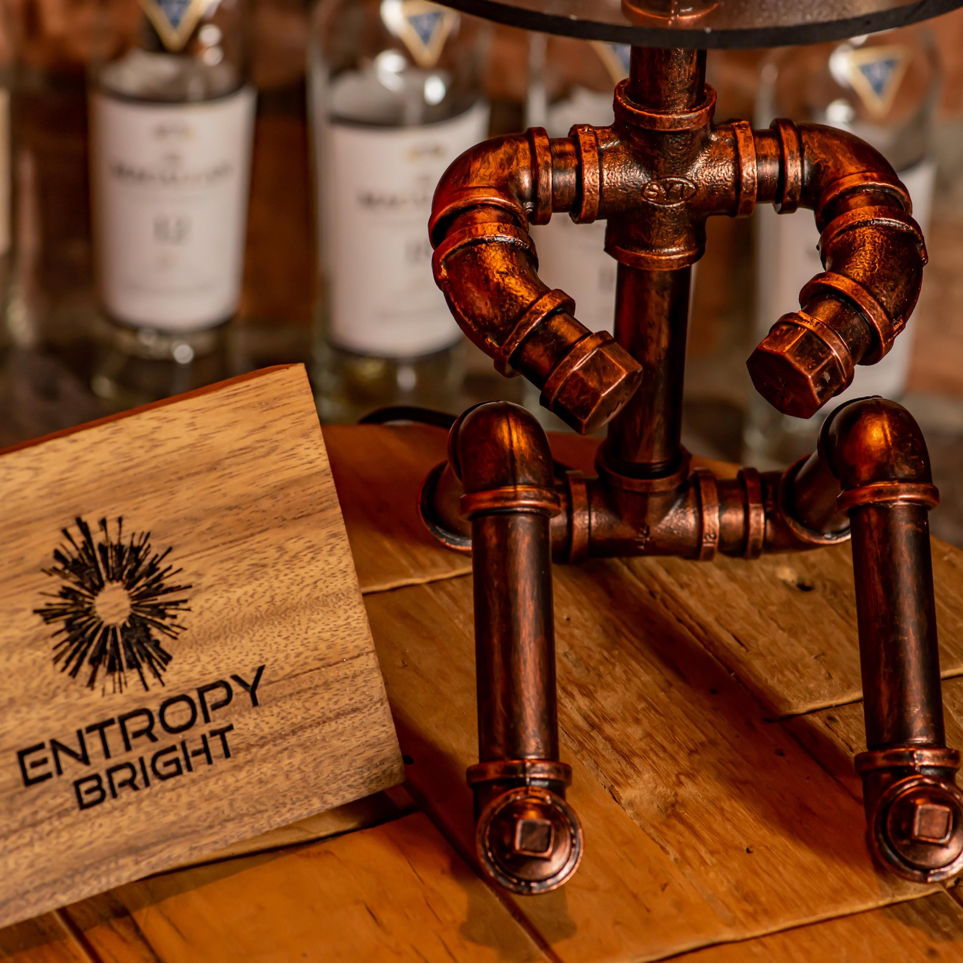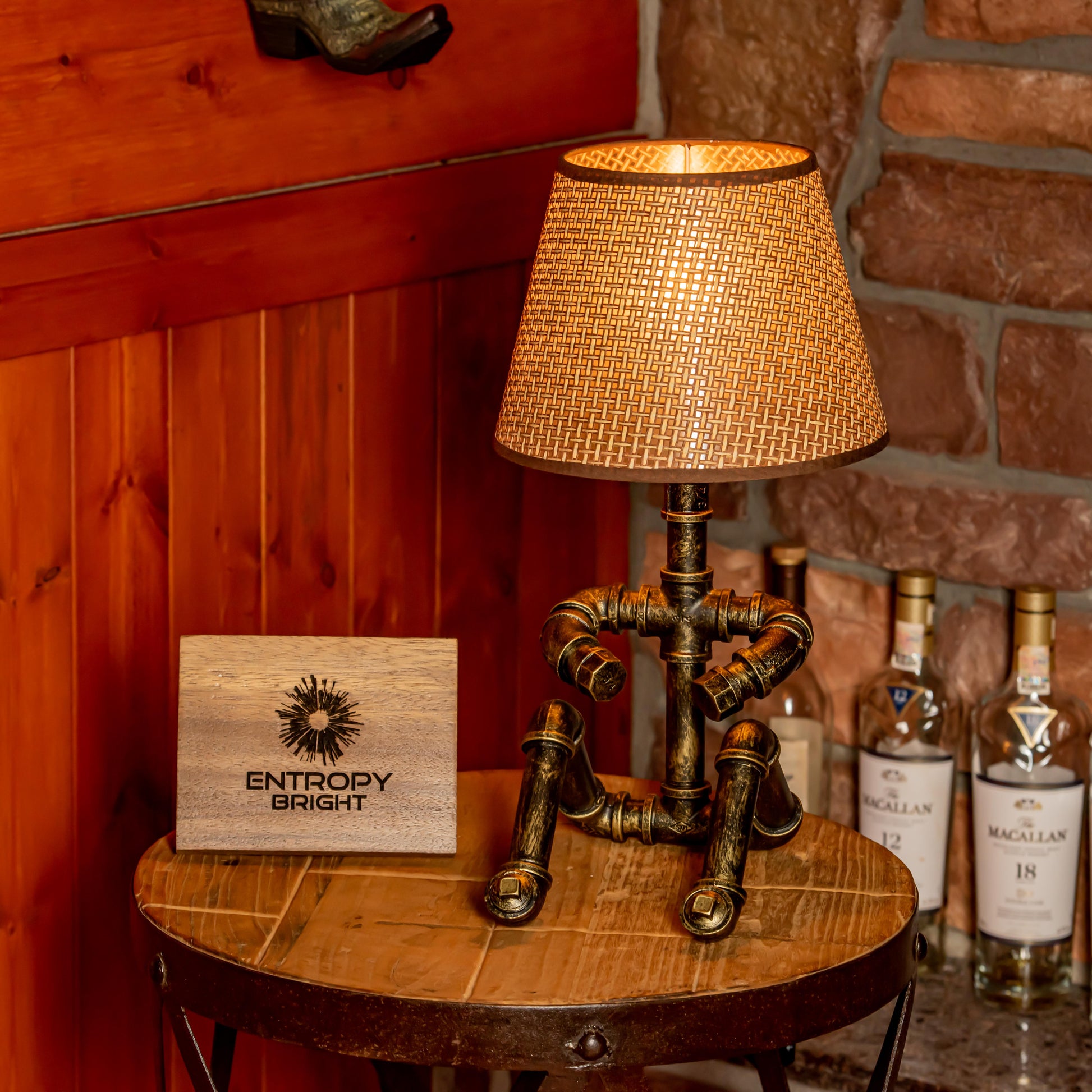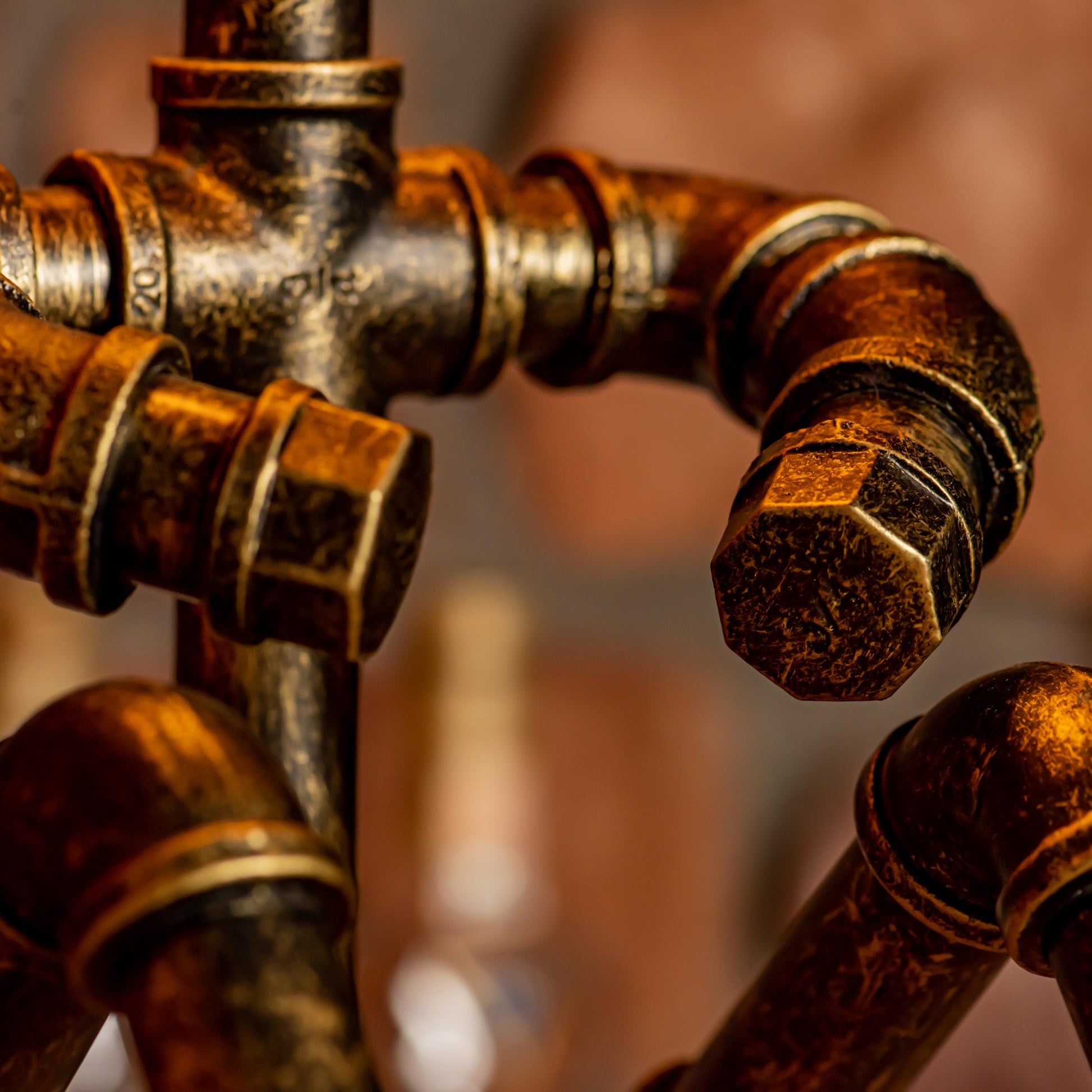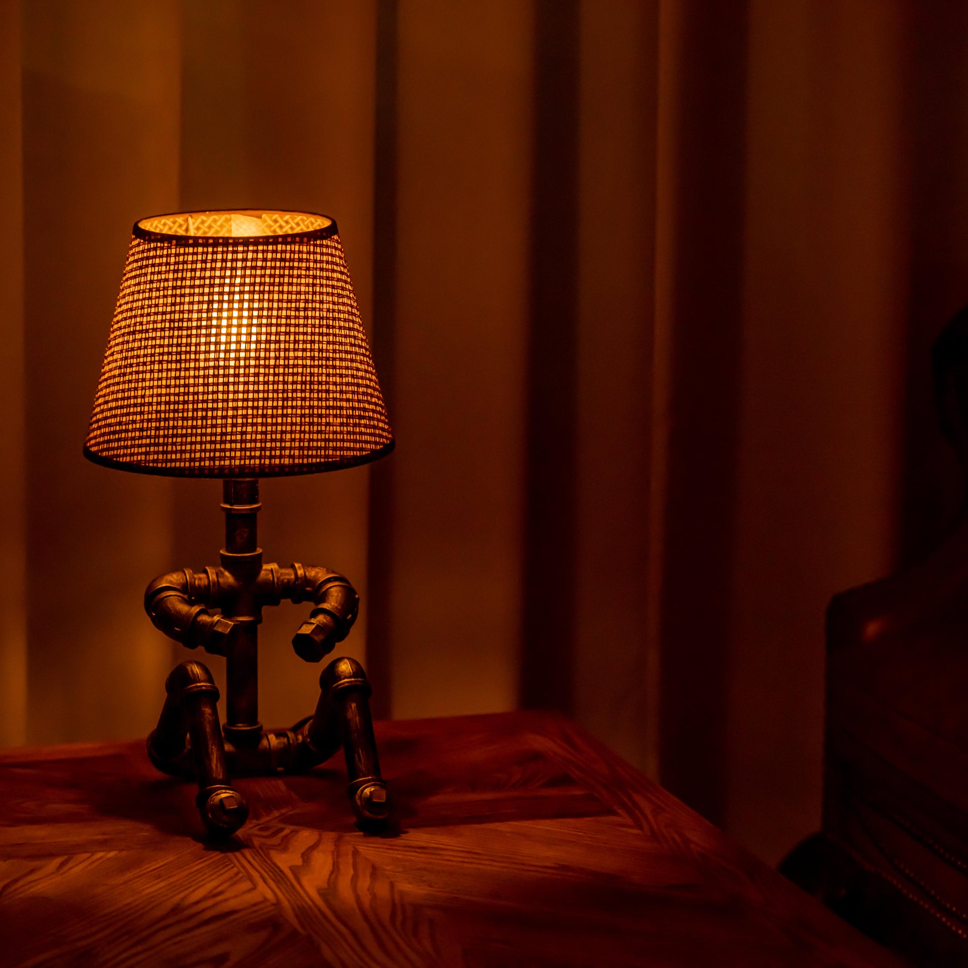 Crafted from durable 1/2" malleable cast iron pipes, this robot-inspired lamp features a raw, industrial look with a steampunk flair. The antique water pipe structure adds vintage charm, making it a standout décor piece.