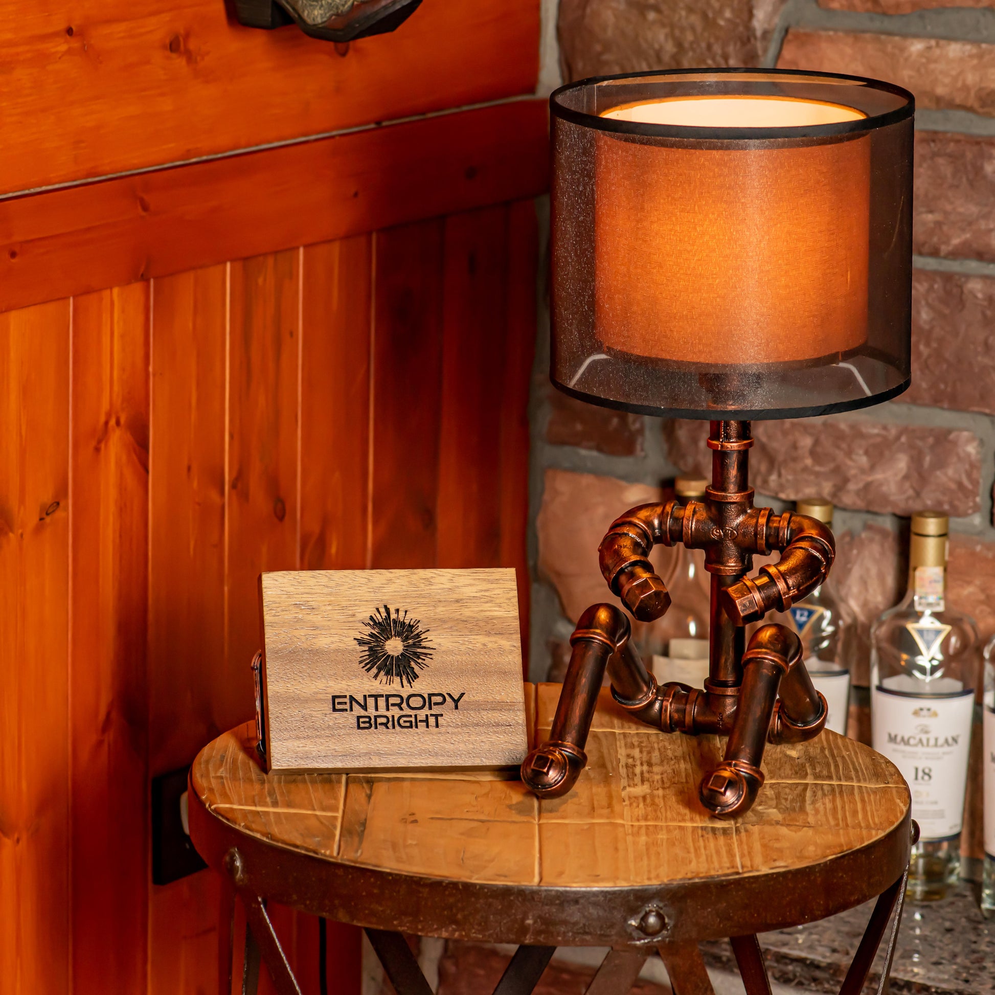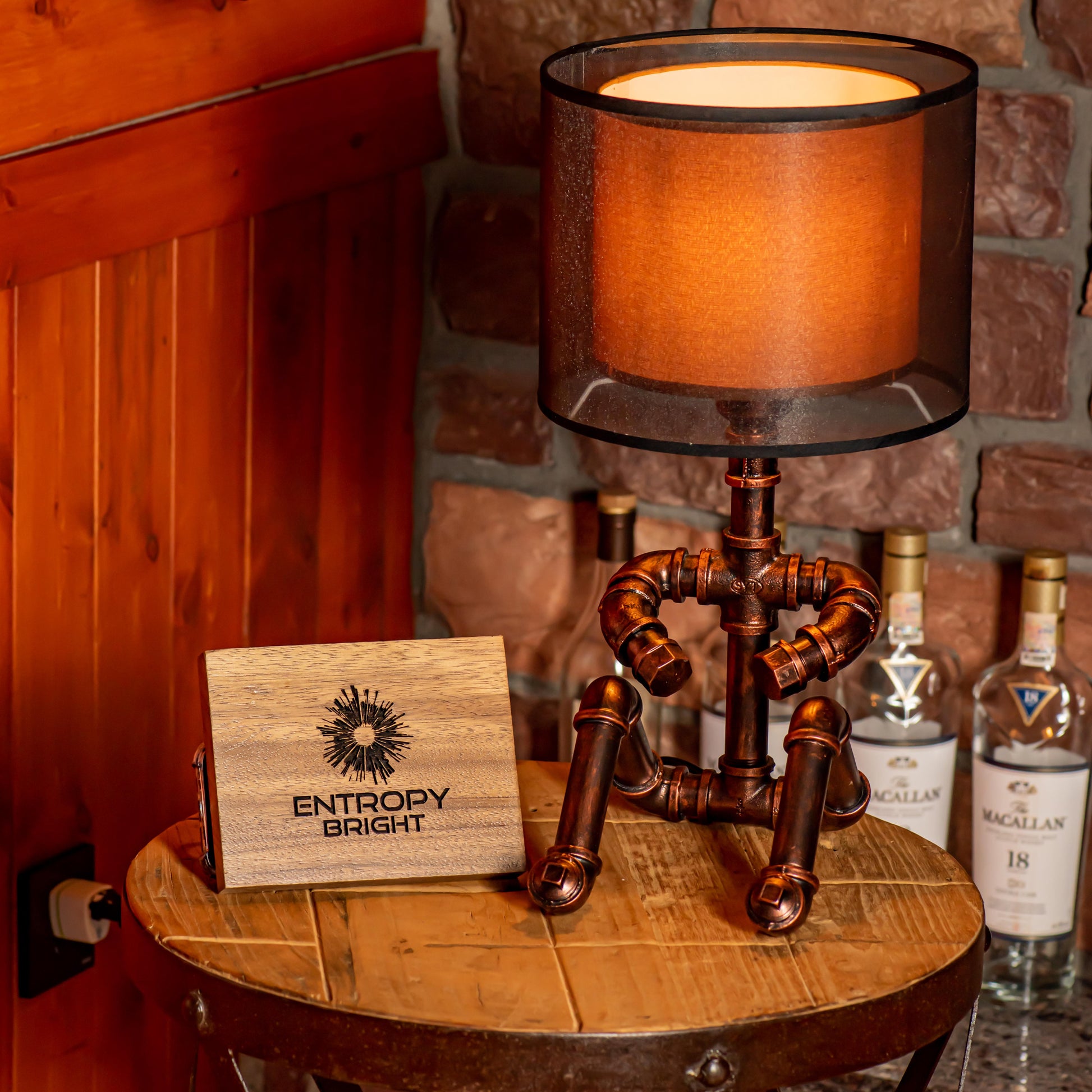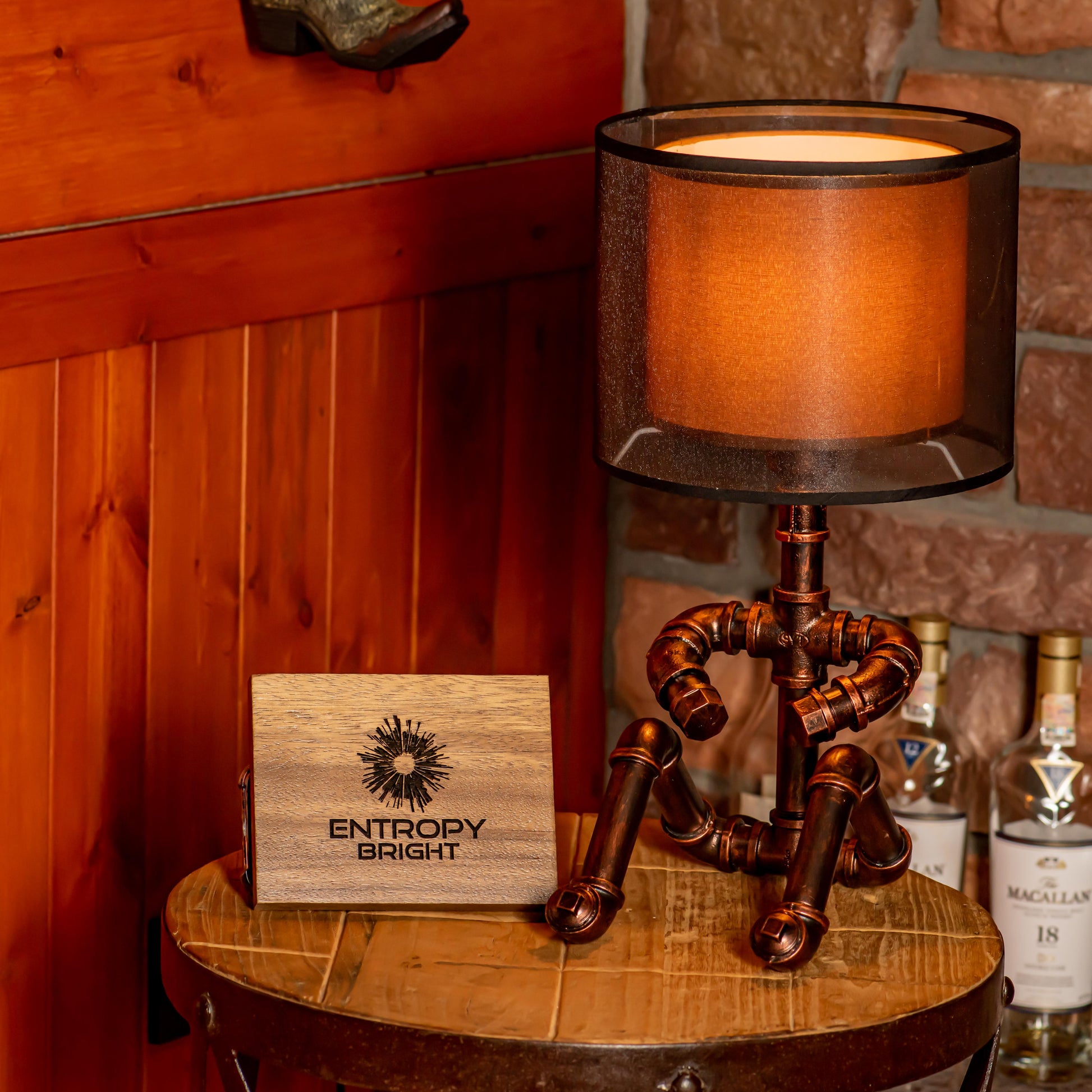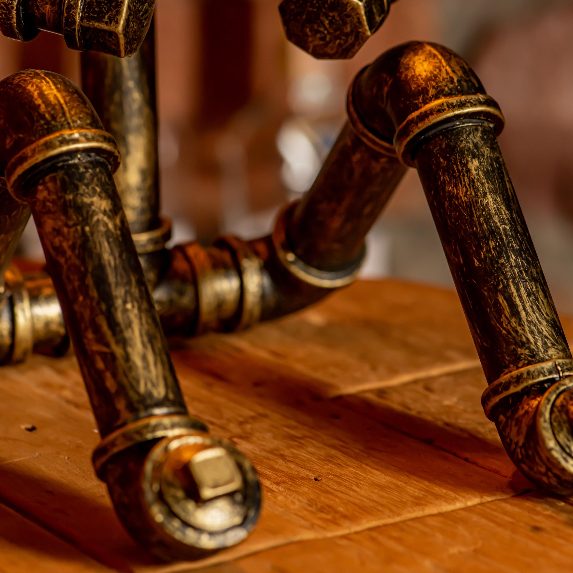 Crafted from durable 1/2" malleable cast iron pipes, this robot-inspired lamp features a raw, industrial look with a steampunk flair. The antique water pipe structure adds vintage charm, making it a standout décor piece.