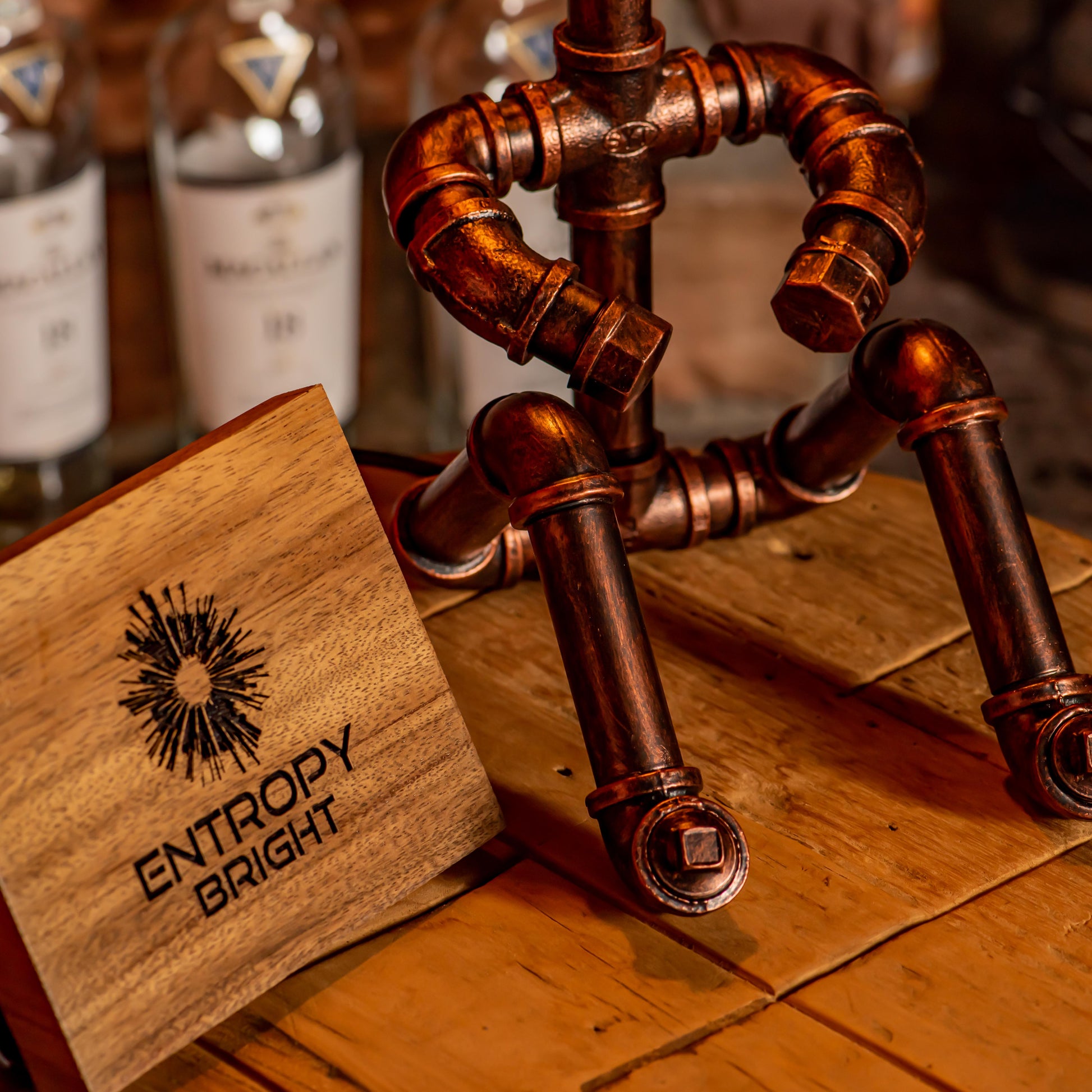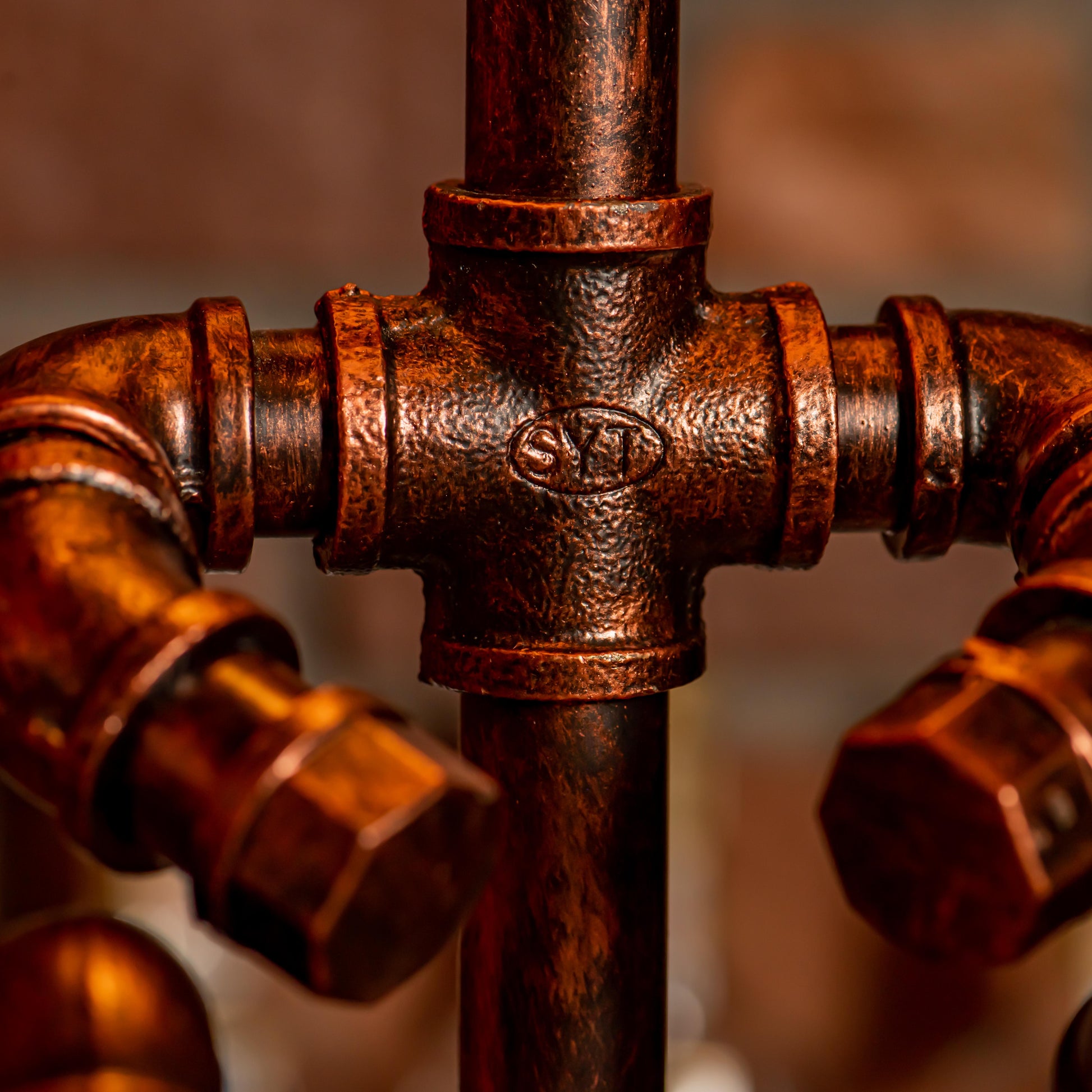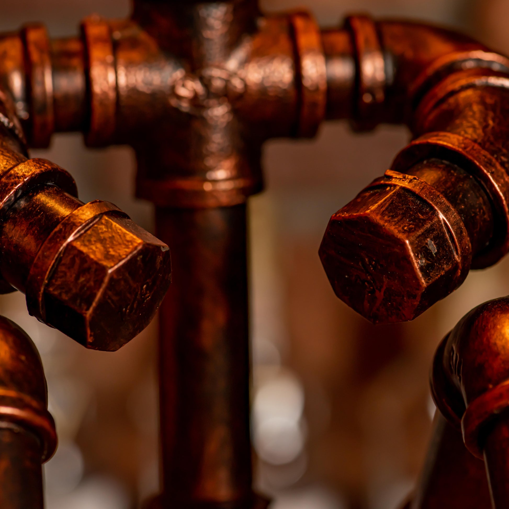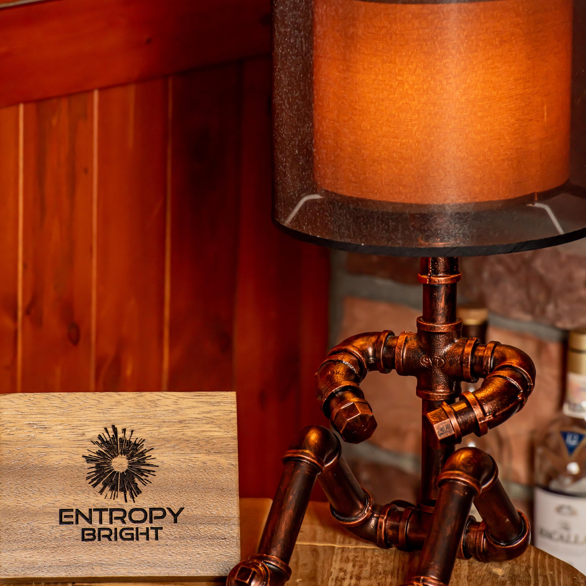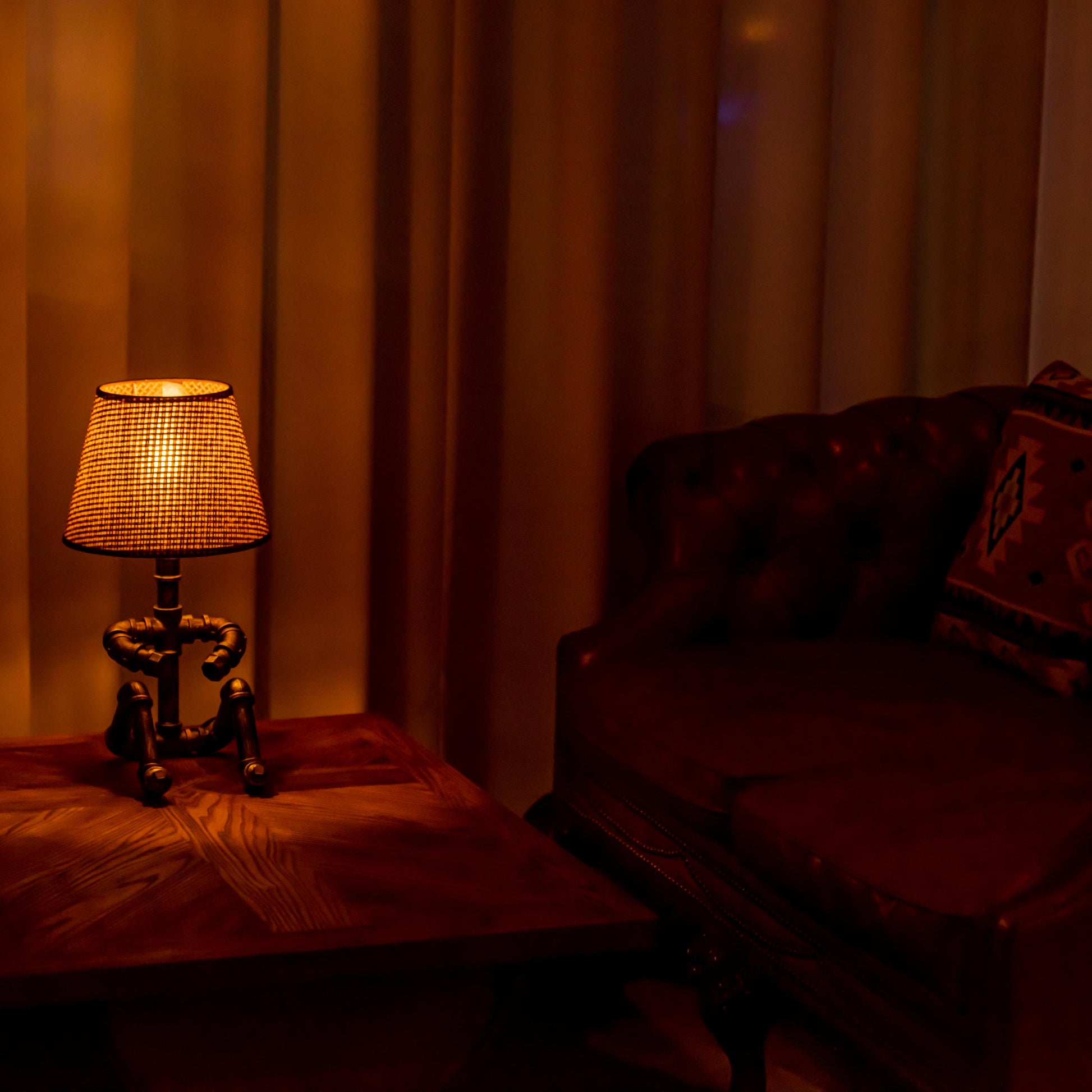 Crafted from durable 1/2" malleable cast iron pipes, this robot-inspired lamp features a raw, industrial look with a steampunk flair. The antique water pipe structure adds vintage charm, making it a standout décor piece.