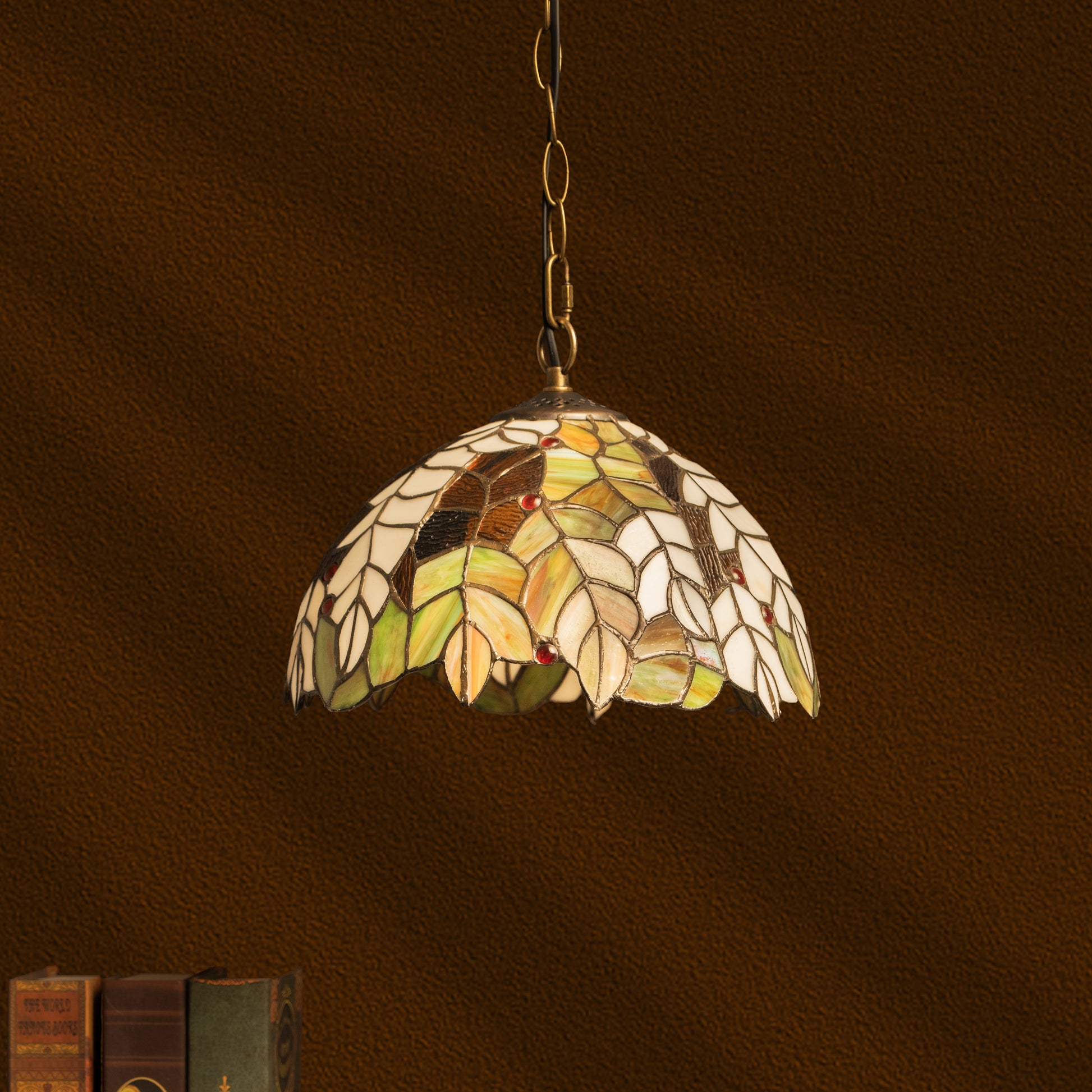 Designed to blend nature’s elegance with timeless artistry, this pendant light serves as a sophisticated focal point in dining areas, reading nooks, or cozy corners. The intricate glasswork complements both modern and traditional interiors.
