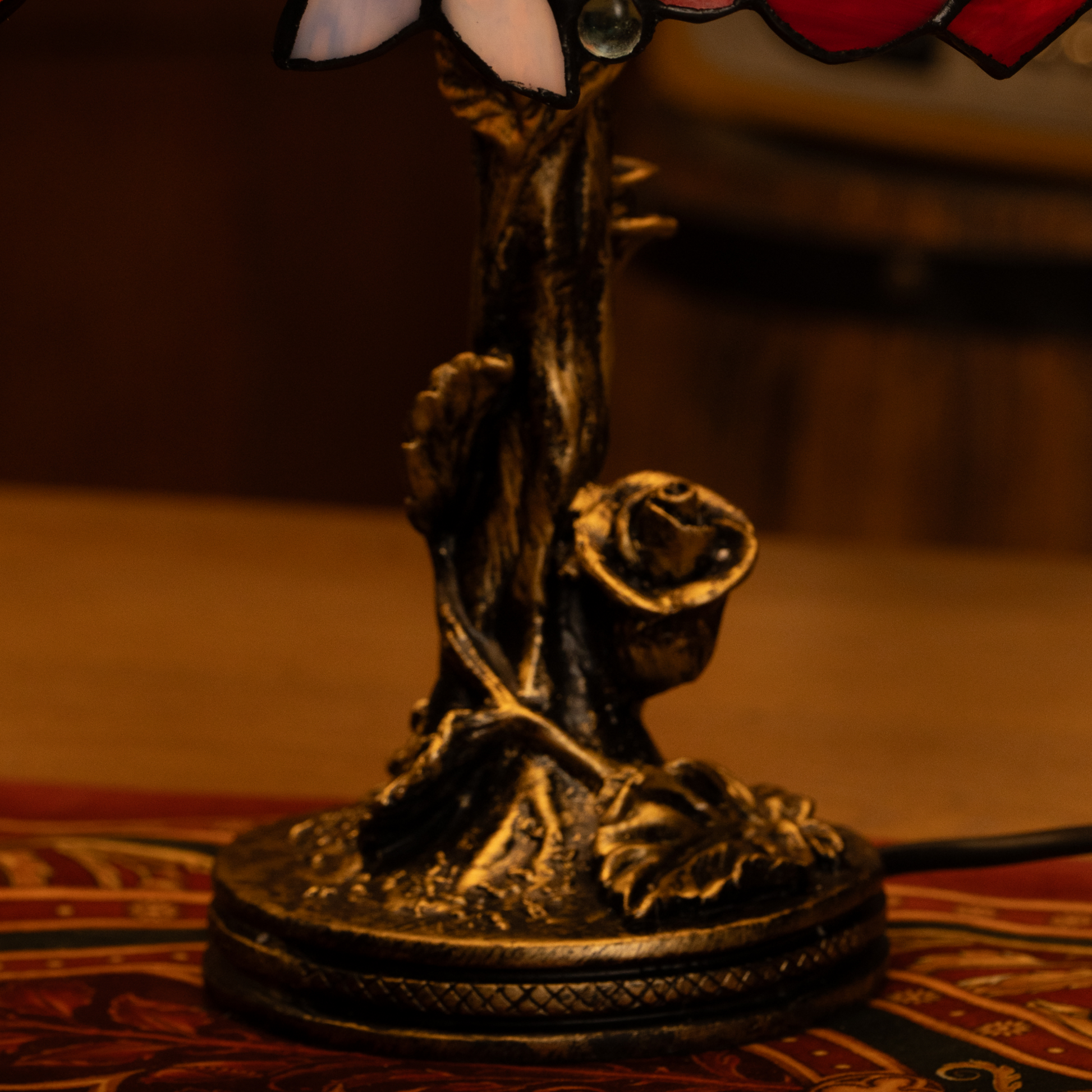 - Material: Stained Glass Shade, Durable Metal Base with Antique Bronze Finish