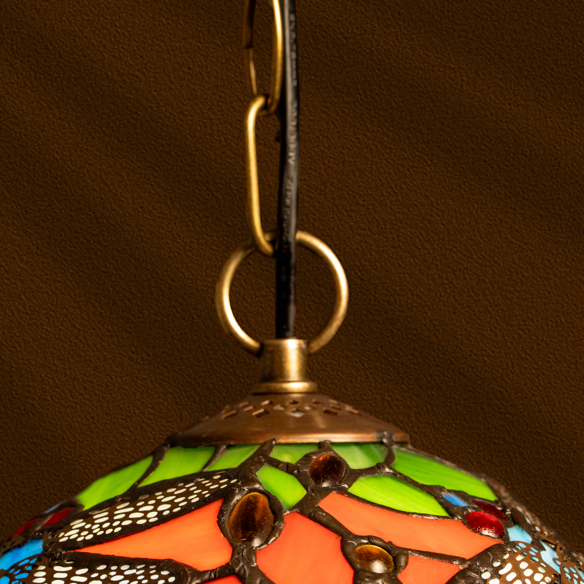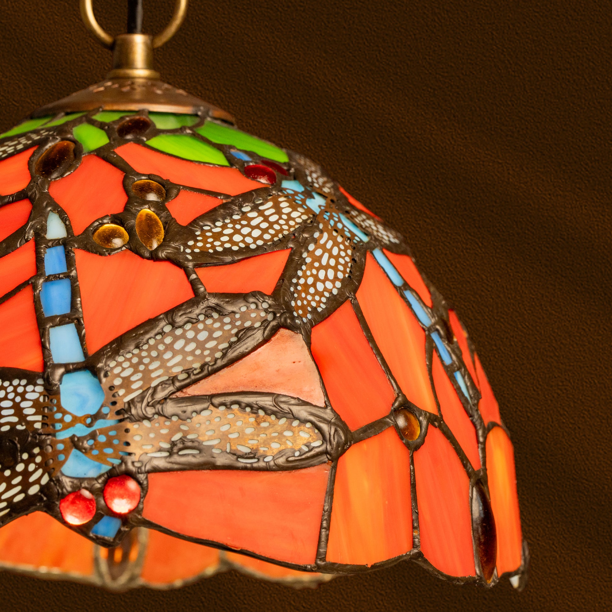 Each stained glass panel is hand-cut and meticulously soldered, reflecting authentic Tiffany craftsmanship in vivid, artistic detail.