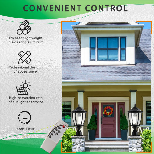 Solar Column Headlight with Dimmable LED -Classic Elegance & Energy Efficiency