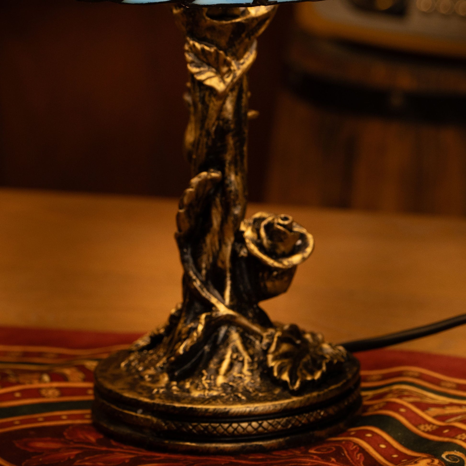 - Material: Stained Glass Shade, Durable Metal Base with Antique Bronze Finish