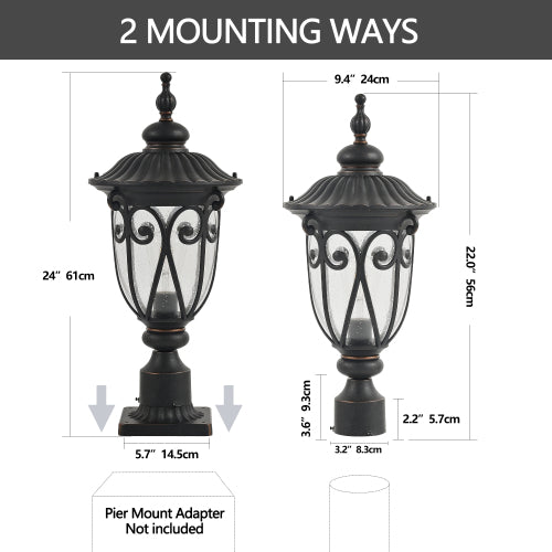 24" Vintage Black Outdoor Post Lantern -Aluminum with Bubble Glass