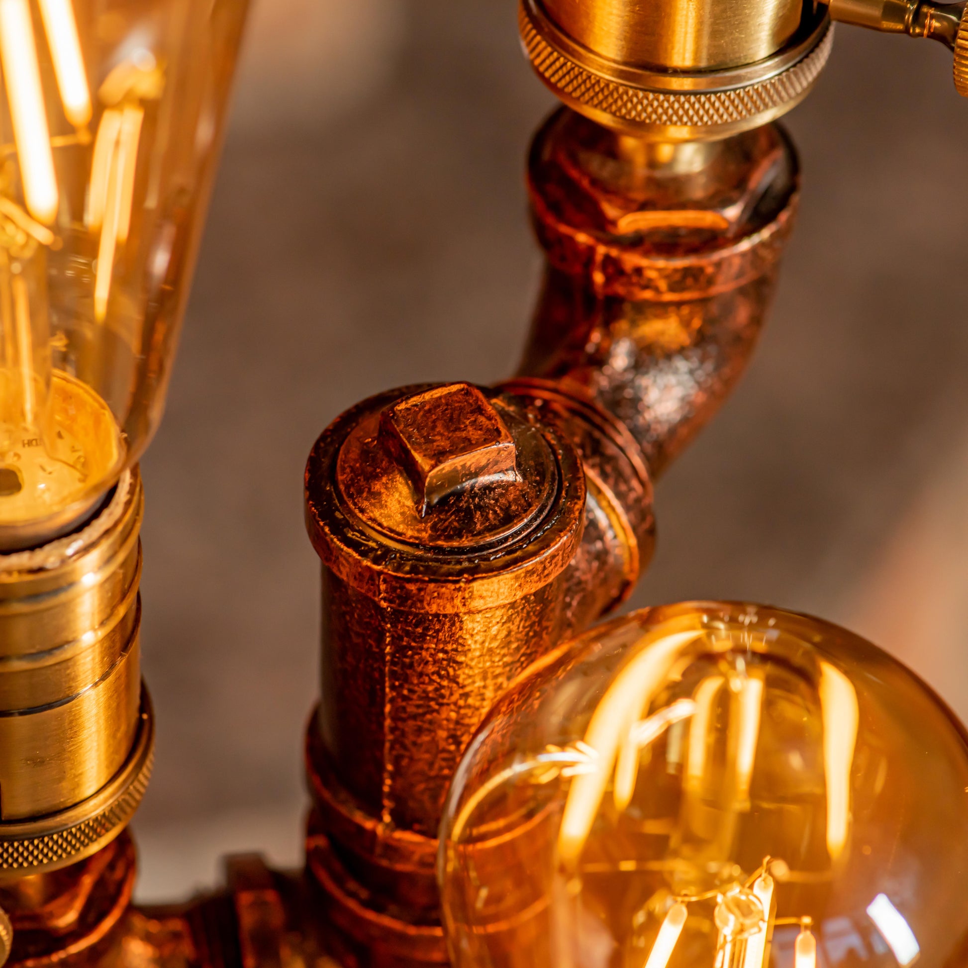 Inspired by steampunk and modern industrial design, this fixture features rugged iron piping that mimics exposed plumbing. Its bold structure adds character, making it a striking centerpiece for any space.